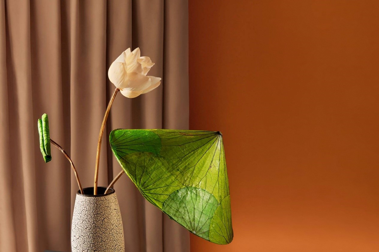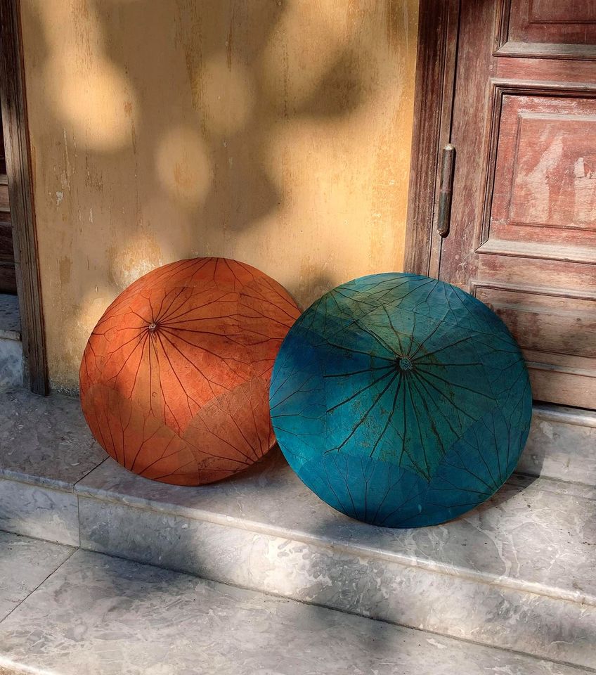 With a lotus conical hat on the hands, everyone will be surprised because the lotus leaves still retain their shape into each vein though it slickly covered on the frame of the hat. The lotus tree is a symbol of Vietnamese culture. It represents the beauty of the countryside. Also, nón is a symbol of Vietnamese culture; It associated with the image of a gentlewoman. Holding the lotus leaf hat, people will feel the lingering fragrance of the countryside. And people prefer both lotus leaf conical hats and nón Quai thao (flat palm hat with fringes). Decorating the hats with lotus leaves is one of the unique creations of artisan Ta Thu Huong, a Chuong villager. “For a long time, I have thought about changing designs, materials of nón. And making nón from the lotus leaves is one of my ideas. It’s a very complicated and sophisticated process to make a lotus leaf hat; however, I was satisfied with the completed products. In addition to using lotus leaves, I have decorated lotus leaf hats with lots of Vietnamese images to meet the requirements of customers, especially tourists.” Ms. Huong said.