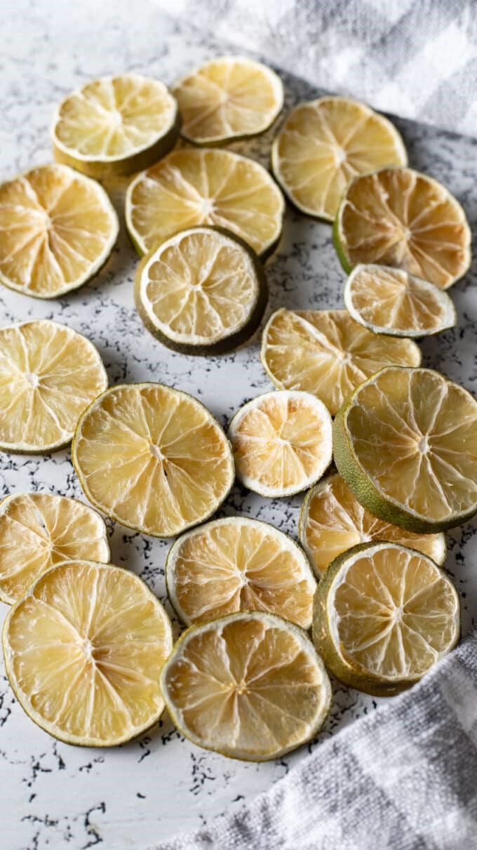 You can dry the slices or you can even just dry the lime zest.