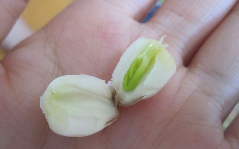 Step 2: Extract the plumule. After you have collected the lotus seeds, remove the outer shell and the green seed coat. The small, green embryo at the center is the lotus plumule. Carefully extract the plumules using a pair of tweezers or your fingers.