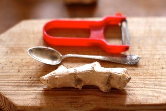 Fresh ginger doesn’t always have to be peeled, even though you will encounter this instruction in most recipes. If the ginger is young and the skin is very fine and clings to the root, or if it is going to be finely chopped and mixed in with many other things, you can skip the peeling step. Peel only when you have aesthetic concerns or if you’re chopping the ginger in a large dice and you don’t want the texture of the skin to be experienced.