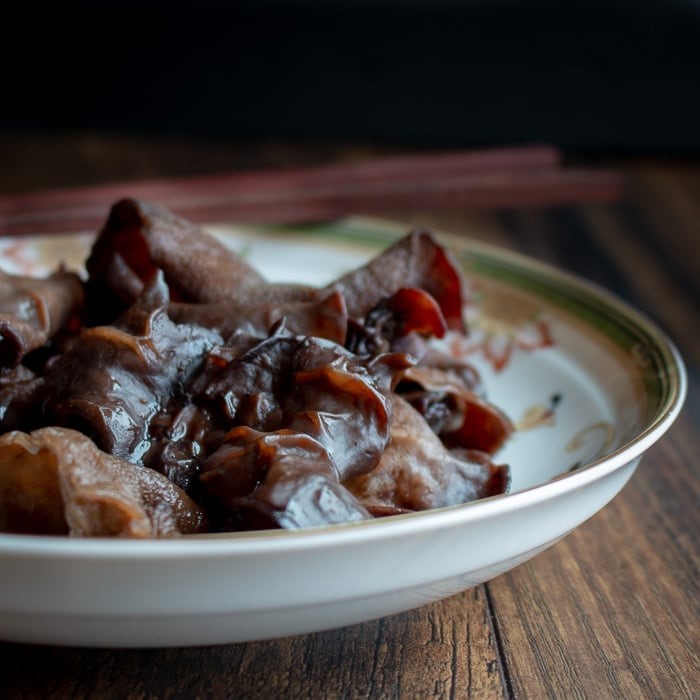 Wood Ear mushrooms are fun to eat and have this addictive crunchy jelly texture. They have this delicious mouth feel as they are smooth and have this little crunch when you bite into one. These crunchy black fungi are fabulous in many Chinese recipes like our Suan La Tang (酸辣汤) Hot and Sour Soup, Chinese Salads and stir fries, just to name a few. Be sure to give our Wood Ear Mushroom Vegan Stir Fry a try soon. It’s is crunchy, spicy and easy to prepare Chinese recipe that is super healthy and delicious too. Wood Ear Mushrooms are very delicate in flavor with a little earthy flavor. They act just like tofu as they pick up any flavors you have going on in the dish. This makes them a delicious way to add texture to any dish you like.