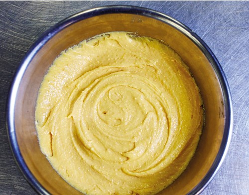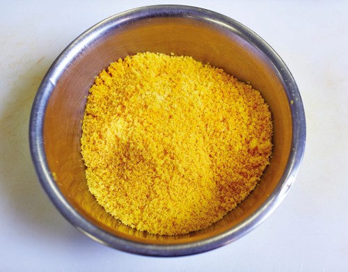 2. Mash the yolks with a fork, or whizz them in a food processor, until they’re fine and crumbly.